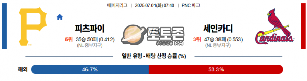 07월 01일 22:25 MLB 피츠버그 파이리츠 vs 세인트루이스 카디널스 | 야구 스포츠분석