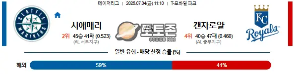 07월 04일 11:10 MLB 시애틀 매리너스 vs 캔자스시티 로열스 | 야구 스포츠분석