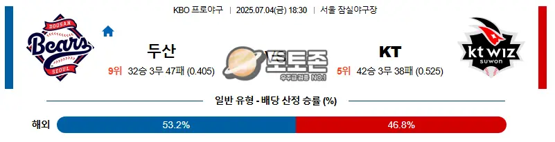 07월 04일 18:30 KBO 두산 vs KT | 한국야구 스포츠분석