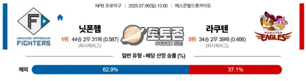 07월 06일 NPB 닛폰햄 vs 라쿠텐 | 일본야구 스포츠분석