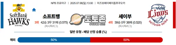 07월 06일 NPB 소프트뱅크 vs 세이부 | 일본야구 스포츠분석