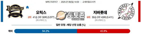 07월 06일 NPB 오릭스 vs 지바롯데 | 일본야구 스포츠분석