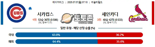 07월 07일 07:10 MLB 시카고C vs 세인트루이스 | 야구 스포츠분석