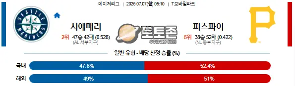 07월 07일 05:10 MLB 시애틀 vs 피츠버그 | 야구 스포츠분석