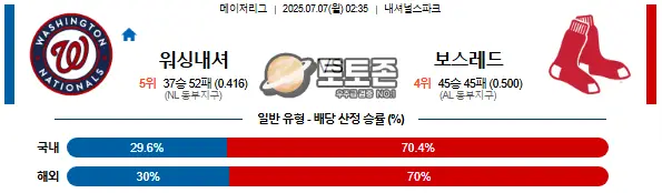 07월 07일 02:35 MLB 워싱턴 vs 보스턴 | 야구 스포츠분석