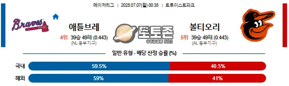 07월 07일 12:35 MLB 애틀랜타 vs 볼티모어 | 야구 스포츠분석
