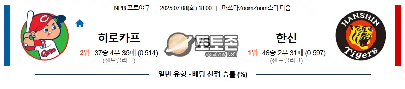 07월 08일 18:00 NPB 히로시마 vs 한신 | 일본야구 스포츠분석