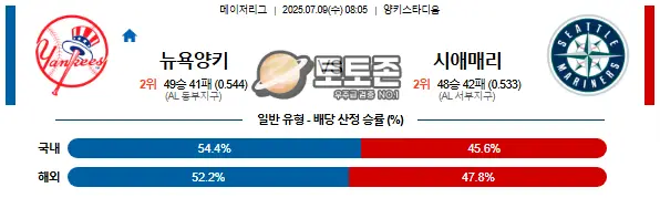 07월 09일 08:05 MLB 뉴욕양키스 vs 시애틀 | 야구 스포츠분석
