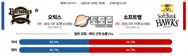 07월 10일 18:30 NPB 오릭스 vs 소프트뱅크 | 일본야구 스포츠분석