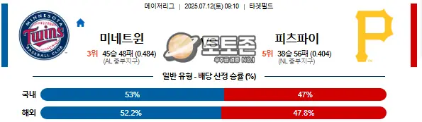 07월 12일 09:10 MLB 미네소타 vs 피츠버그 | 야구 스포츠분석