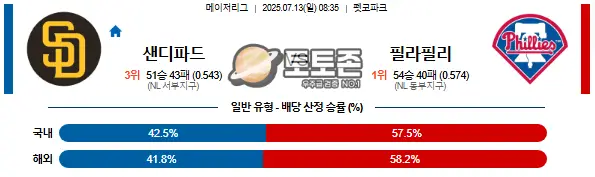07월 13일 08:35 MLB 샌디에이고 vs 필라델피아 | 야구 스포츠분석