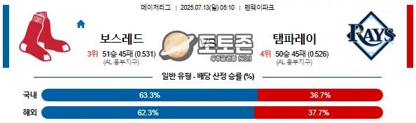 07월 13일 05:10 MLB 보스턴 vs 탬파베이 | 야구 스포츠분석