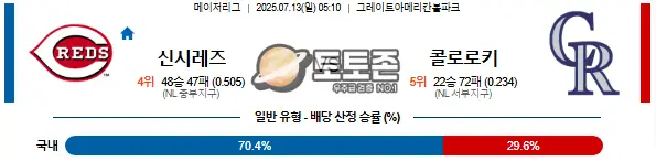 07월 13일 05:10 MLB 신시내티 vs 콜로라도 | 야구 스포츠분석