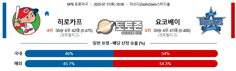 07월 17일 18:00 NPB 히로시마 vs 요코하마 | 일본야구 스포츠분석