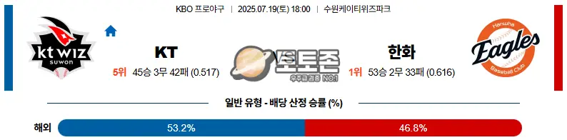 07월 19일 18:00 KBO KT 위즈 vs 한화 이글스 | 한국야구 스포츠분석