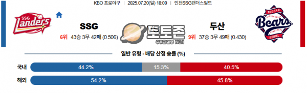07월 20일 18:30 KBO SSG 랜더스 vs 두산 베어스 | 한국야구 스포츠분석