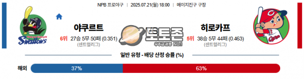 07월 21일 NPB 야쿠르트 vs 히로카프 | 일본야구 스포츠분석