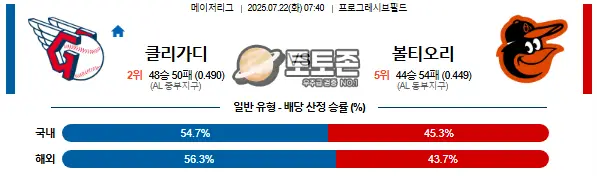 07월 22일 07:40 MLB 클리블랜드 가디언즈 vs 볼티모어 오리올스 | 야구 스포츠분석