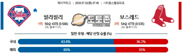 07월 22일 07:45 MLB 필라델피아 필리스 vs 보스턴 레드삭스 | 야구 스포츠분석