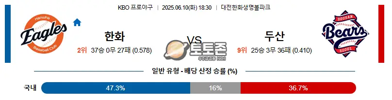 06월 10일 18:30 KBO 한화 vs 두산 | 한국야구 스포츠분석