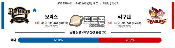 06월 28일 NPB 오릭스 vs 라쿠텐 | 일본야구 스포츠분석